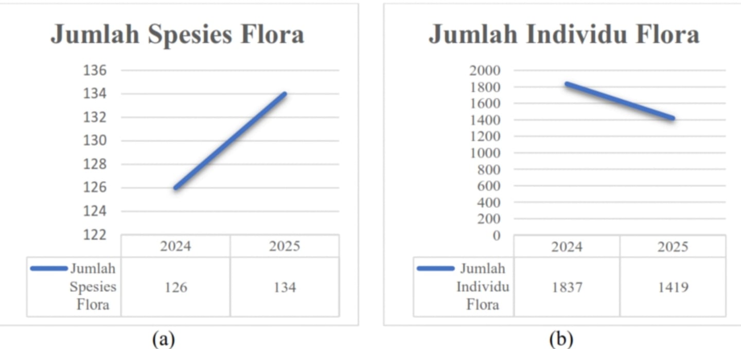 Pada 2025, jumlah spesies flora di kawasan konservasi PT PLN Nusantara Power UP Brantas meningkat dari 126 menjadi 134 spesies. Terdapat delapan spesies baru yang tercatat: kelapa gading, kedondong, jambu bol, jeruk purut, karet kebo, srikaya, turi putih, dan nanas. Kenaikan ini mengindikasikan keanekaragaman hayati yang lebih tinggi, struktur komunitas yang lebih beragam, dan potensi peningkatan stabilitas ekosistem jangka panjang. Namun, beberapa spesies menunjukkan penurunan jumlah individu pada 2025. Penyebab yang mungkin meliputi variabilitas cuaca dan meningkatnya kompetisi terhadap cahaya, air, dan nutrisi seiring beradaptasinya spesies baru.